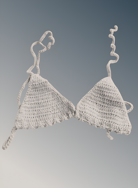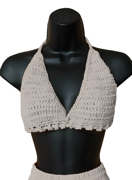Full Coverage Cream Colored Tie Back Rave Festival Crocheted Bralette Bikini Crop Top