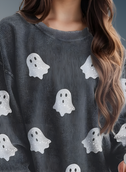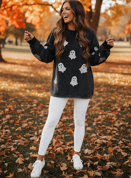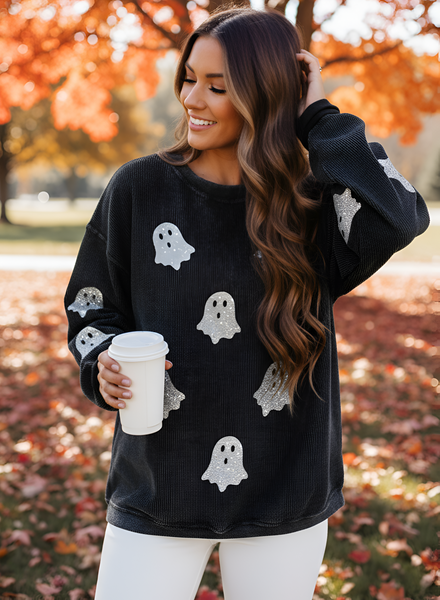 Embrace the spirit of Halloween with our Glitter Ghost Sweatshirt in classic black! This cozy long-sleeve sweatshirt features a playful ghost design adorned with sparkling glitter, making it the perfect blend of spooky and stylish for the fall season. Crafted from soft, breathable fabric, it ensures comfort whether you're out trick-or-treating or enjoying a cozy night in. Elevate your autumn wardrobe and make a statement at any Halloween gathering—grab yours today and let your style shine!