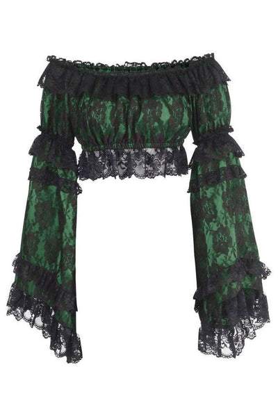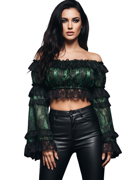 Elevate your wardrobe with the Green and Black Lace Smocked Flare Sleeve Peasant Top, designed to blend comfort and elegance effortlessly. The stretchy lace detailing adds a touch of sophistication, while the smocked bodice ensures a flattering fit for various body types. This versatile top can be styled on or off the shoulder, allowing you to switch up your look with ease. The dramatic flare sleeves not only catch the eye but also add a playful, stylish flair to any outfit. Perfect for both casual outings and special occasions, this top promises to be a standout piece in your collection.
