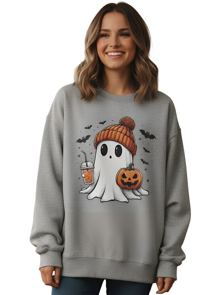 This charming round-neck sweatshirt features an irresistibly cute ghost design, perfect for celebrating Halloween while staying cozy during your trick-or-treat adventures. Crafted from soft, comfortable fabric, it offers warmth and style in one festive package. Whether you're heading out to collect candy or enjoying a spooky night in, this sweatshirt makes a playful yet practical addition to your seasonal wardrobe, ensuring you embrace the spirit of Halloween with both comfort and charm.