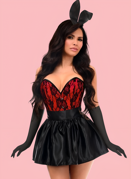 Premium Boudoir Women's Red 5pc Corset Halloween Cosplay Fantasy Bunny Costume Daisy Corsets